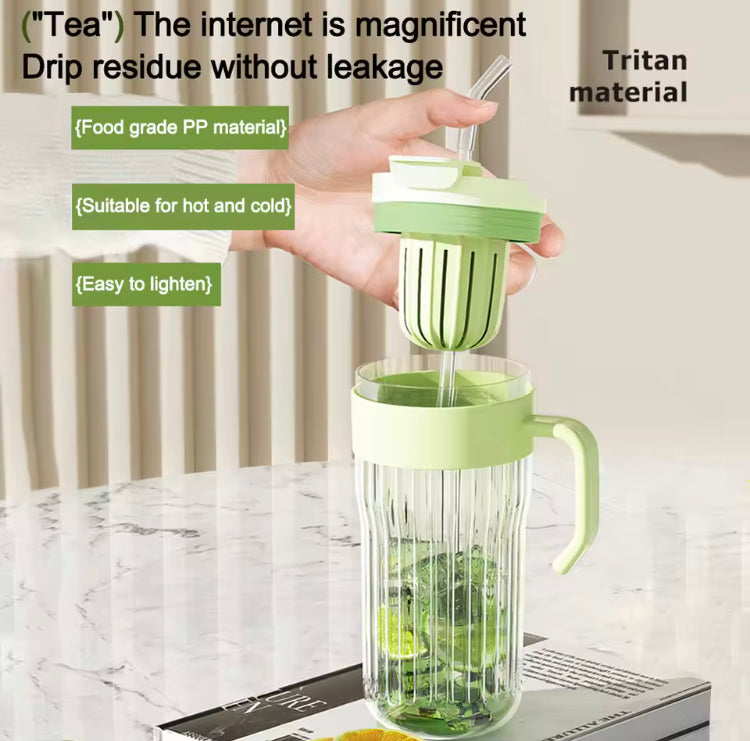 550ml Stripe Coffee Glass with Straw, Stainer Closure