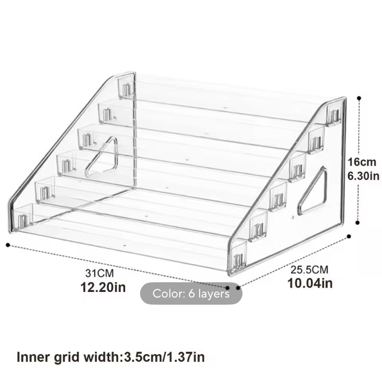 Expertly display your cosmetics and perfumes with our 6-layer acrylic stand. With ample space for eyeshadows, nail polish, and perfumes, this stand will keep your collection organized and readily accessible. Made with durable and clear acrylic material, it is the perfect addition to any makeup lover's routine.