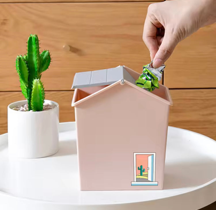 Introducing the Creative House Shape Mini Portable Dustbin, the perfect solution for keeping your space clean and clutter-free. Its innovative design allows for easy transport and disposal of waste, making it ideal for any room in your home or office. Keep your surroundings tidy with this must-have product.