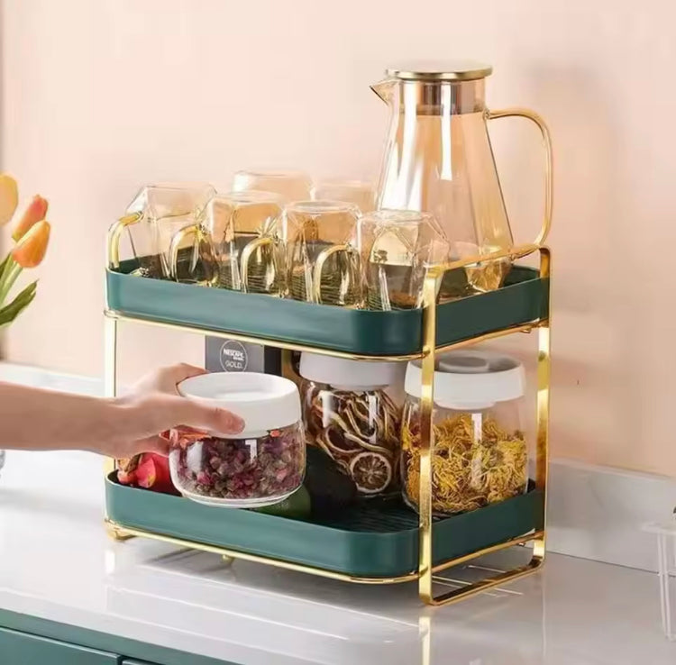 This double layer drying rack is a must-have for any kitchen household. With its durable construction and ample drying space, it provides a convenient and efficient way to air dry dishes, utensils, and more. Its layered design allows for maximum airflow and quick drying, leaving your dishes spotless and ready to use in no time. Keep your kitchen clutter-free and your dishes sparkling with this essential kitchen accessory.