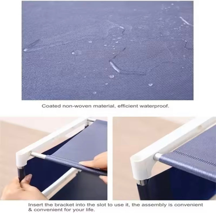 This Four Layers Non-Woven Shoe Rack is perfect for organizing your ever-growing shoe collection. With four levels, it can hold a large number of shoes, keeping them neatly stored and easily accessible. The non-woven material is durable and allows air circulation, preventing odor build-up. A must-have for any shoe lover.