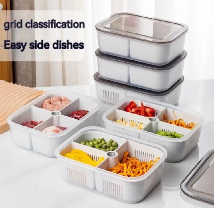 Maximize your food storage with our Four Partition Food Preservation Box with Lid. This innovative design offers four compartments to keep your meals organized and fresh. Made with a secure lid, you can prevent spills and maintain the quality of your food. A must-have for any kitchen.