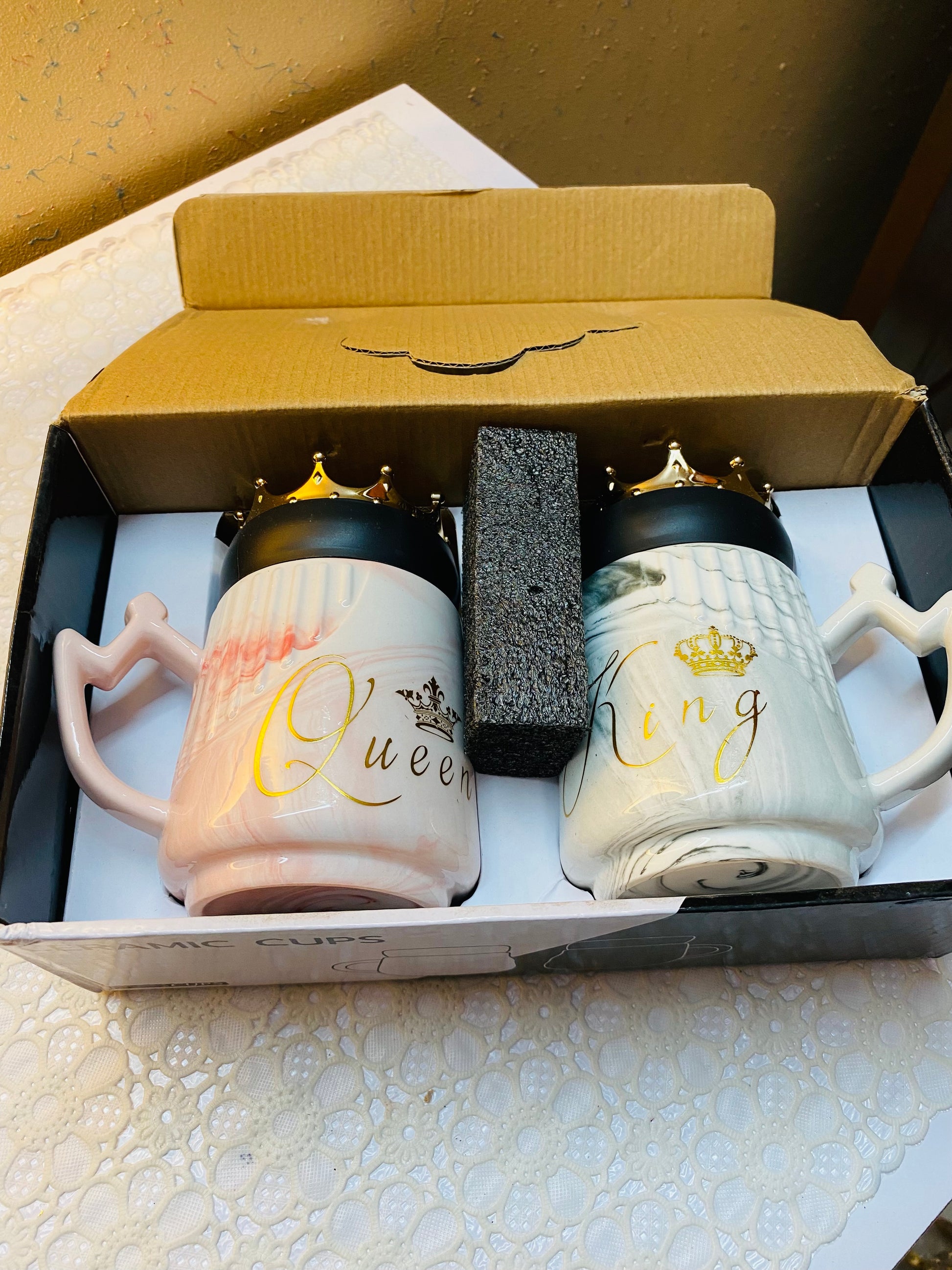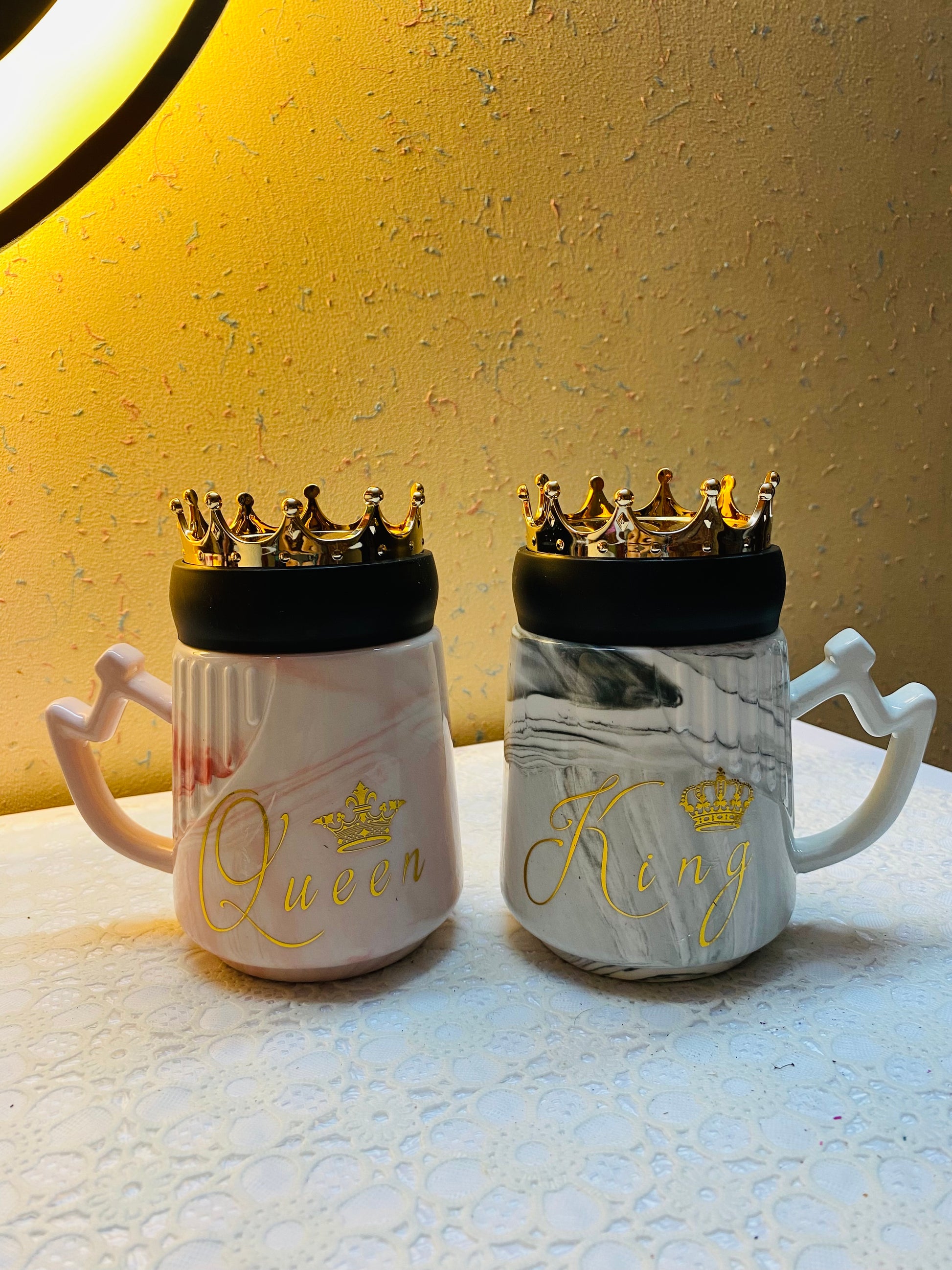 These King Queen Couple Mugs with Lid and Box Packaging are the perfect gift for your significant other. Made from high-quality ceramic, these mugs feature a unique design and come with a lid and box packaging, making them the perfect romantic and practical gift. Show your love with these charming mugs.