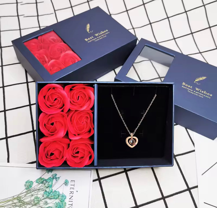 This elegant Love Heart Pendant comes packaged in a beautiful Roses Gift Box, making it the perfect gift for any special occasion. The pendant's intricate design and stunning craftsmanship showcase the true beauty of love and will surely be treasured by your loved one.