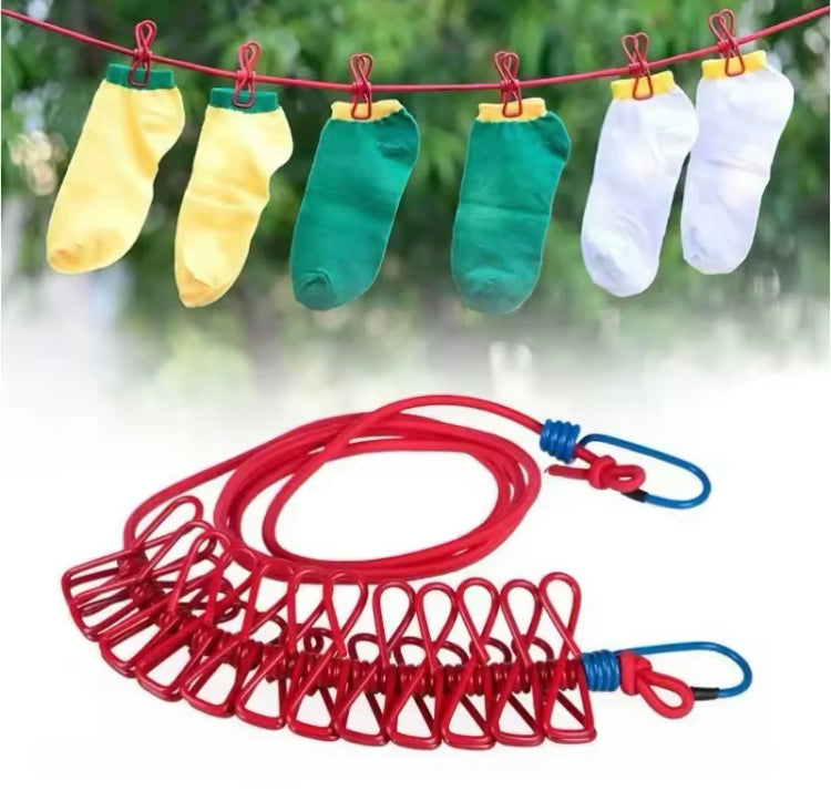 Portable Clothesline with 12 Clips Dryer Clothes Rope